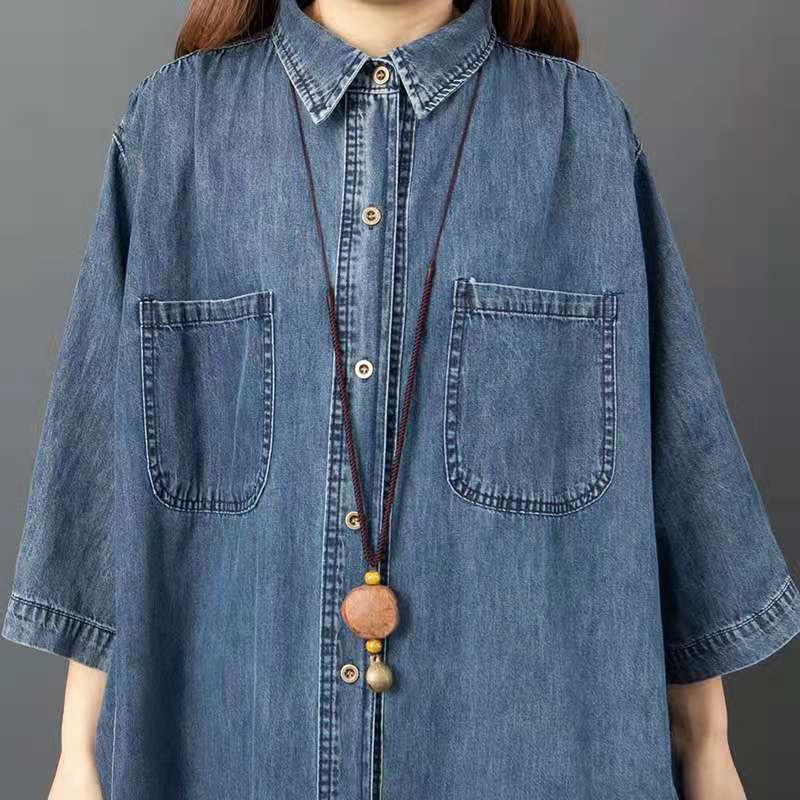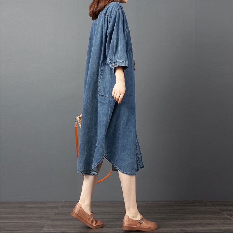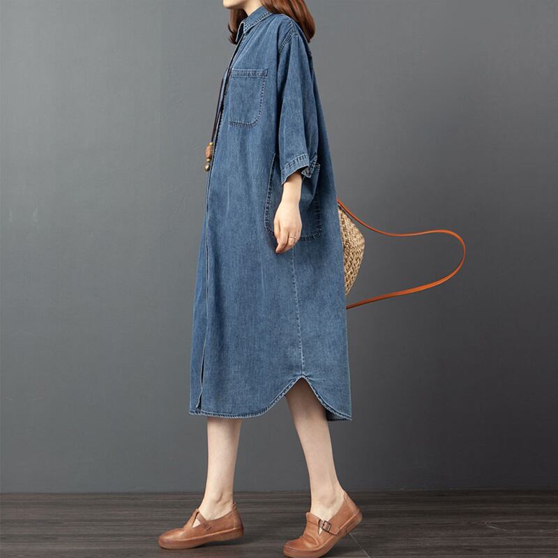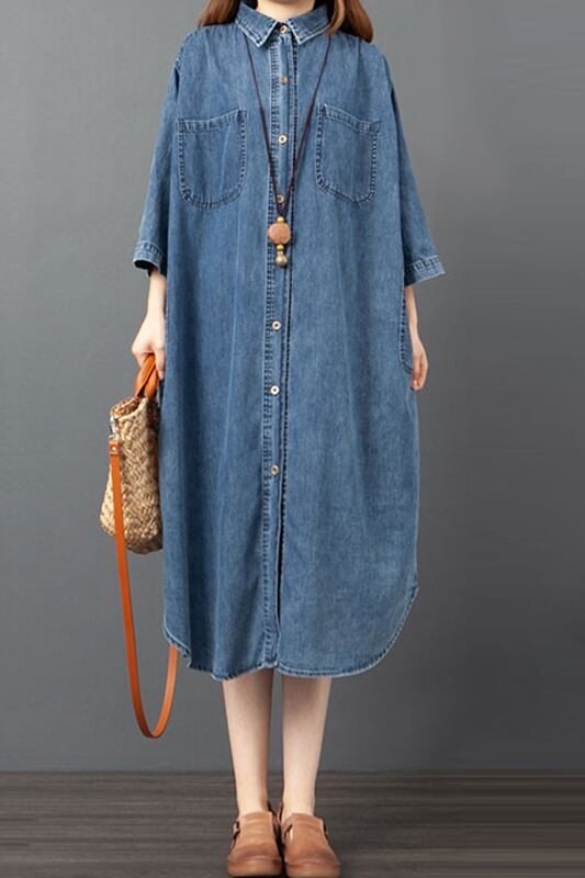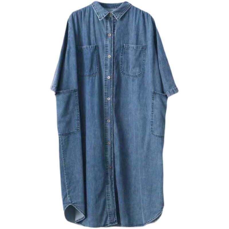 初回送料無料プラスサイズデニムシャツドレスデニムドレスラペルワンピース