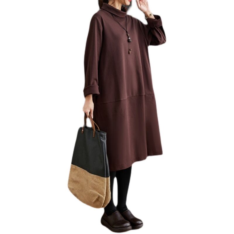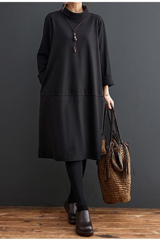 初回送料無料ルーズロングドレスミドル丈タートルネック