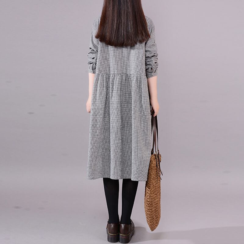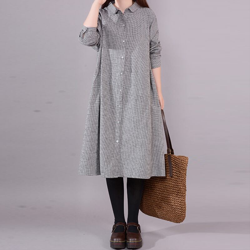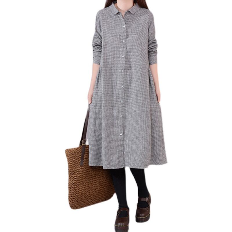 初回送料無料プラスサイズのルーズコットンリネンドレスチェック柄