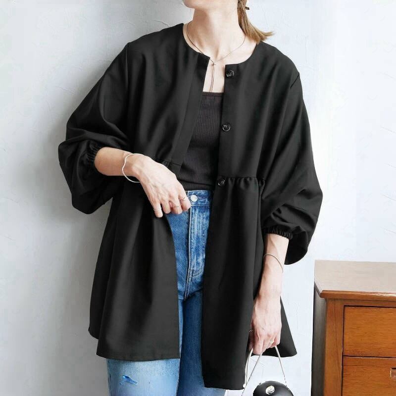 初回送料無料 秋冬レディースファッション カジュアル ランタン袖カーディガン シンプルトップス