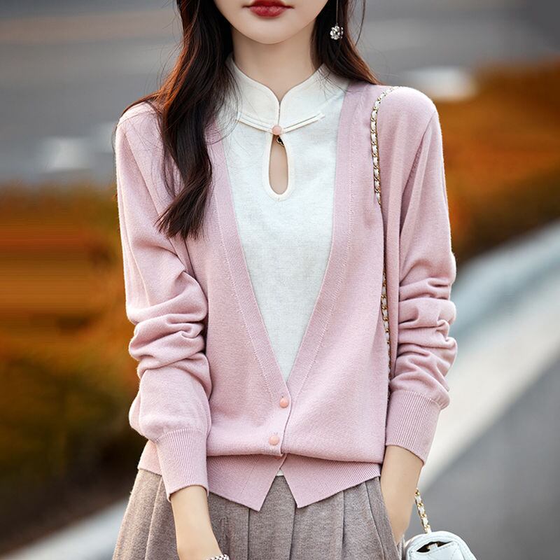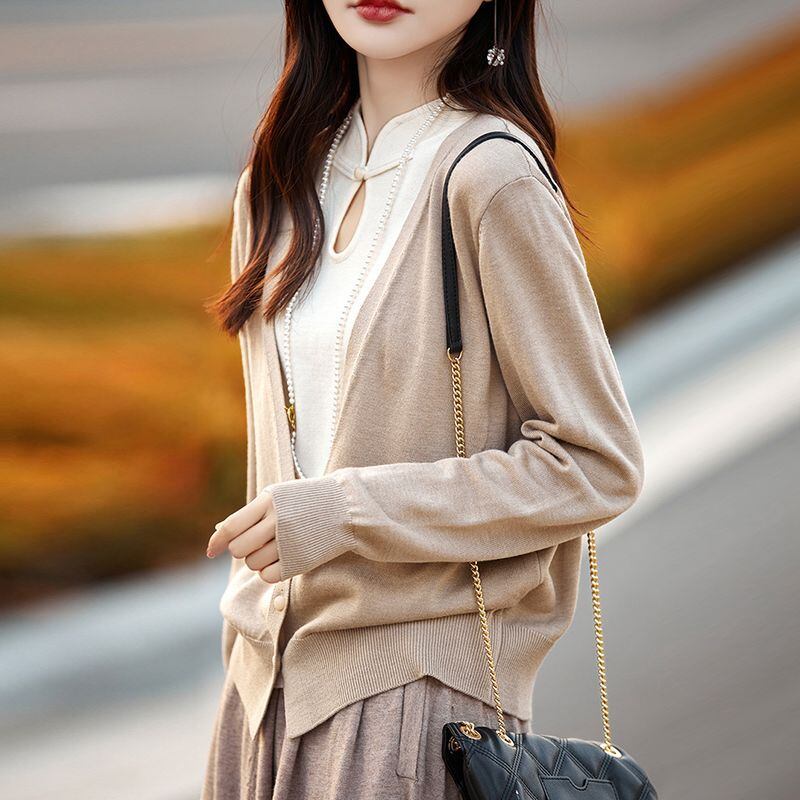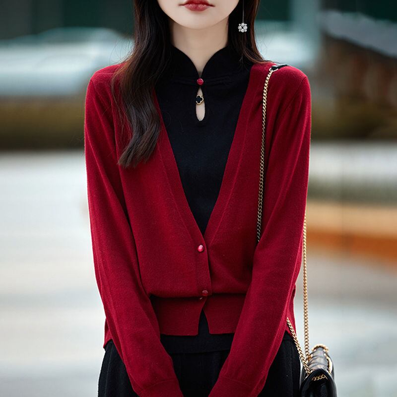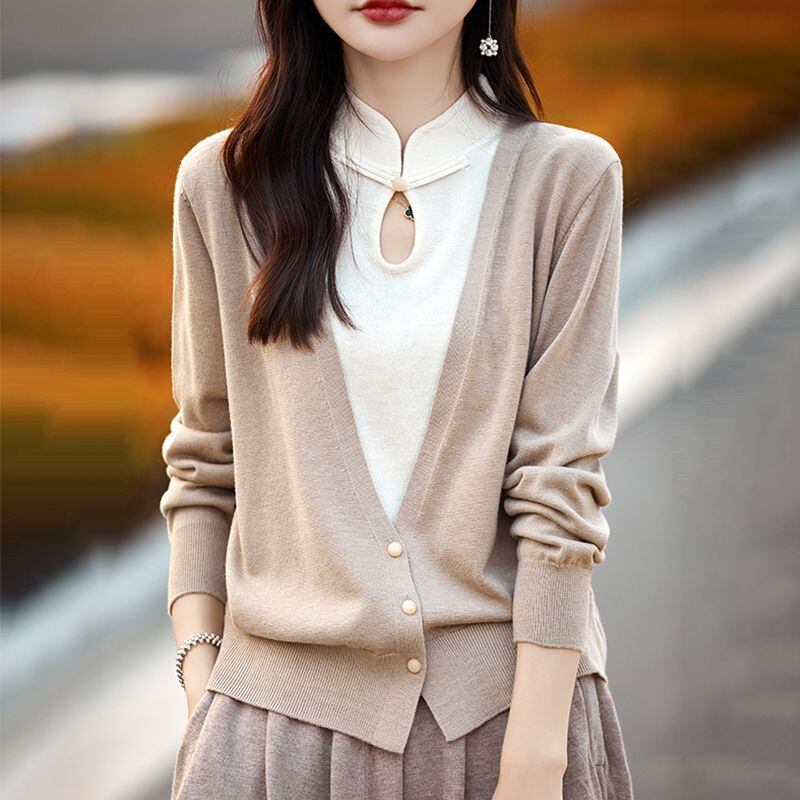 初回送料無料 秋冬レディースファッション フェイク2枚 パッチワーク 色合わせ 人気トップス