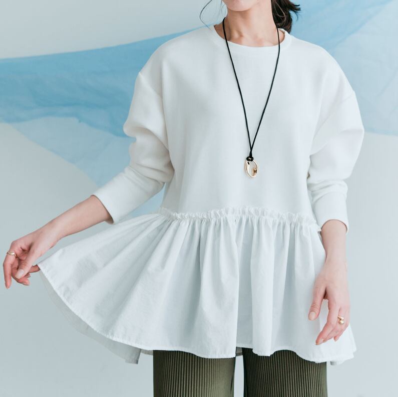 初回送料無料 秋冬レディースファッション カジュアル パッチワーク 無印シンプル トップス