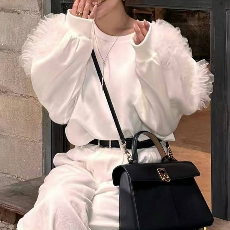 初回送料無料 秋冬レディースファッション スウェット パッチワーク 個性的カジュアルトップス