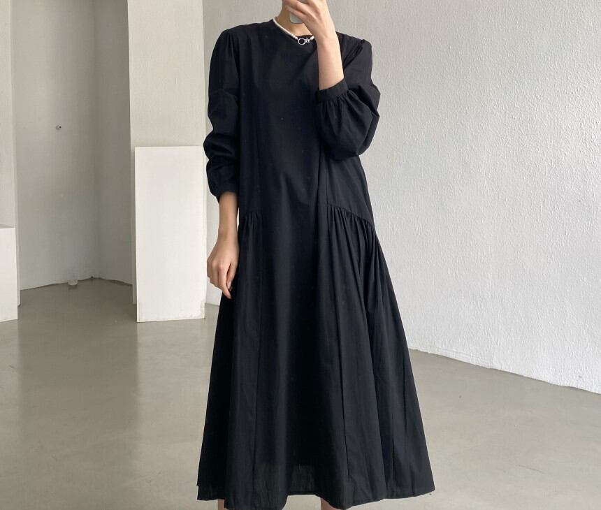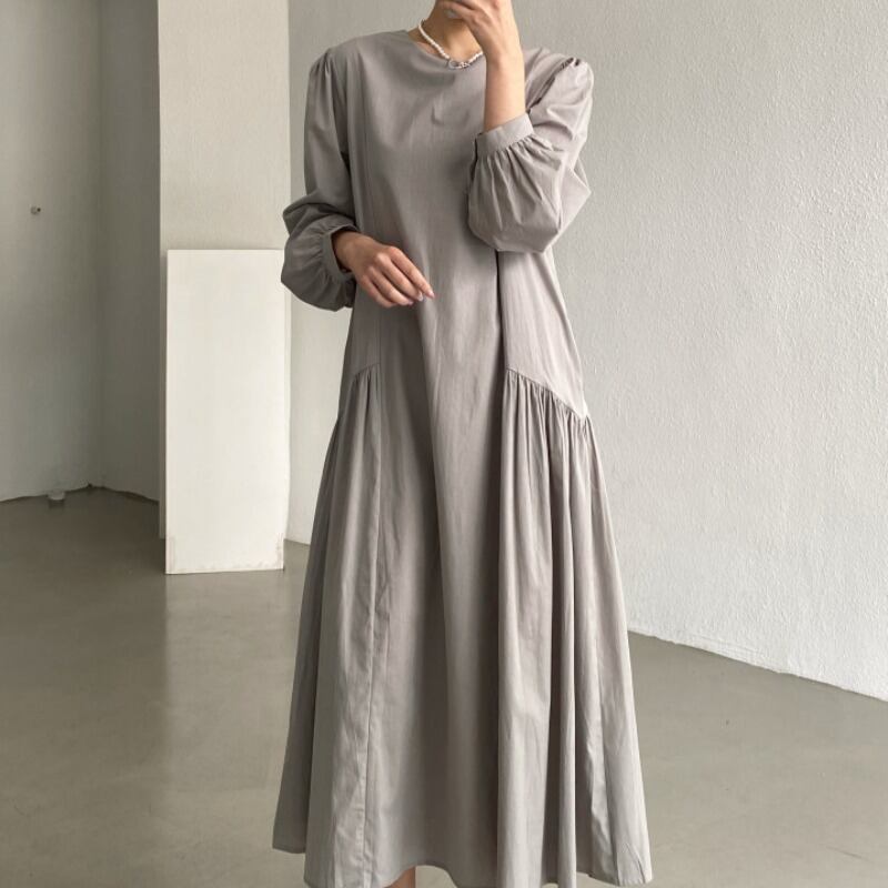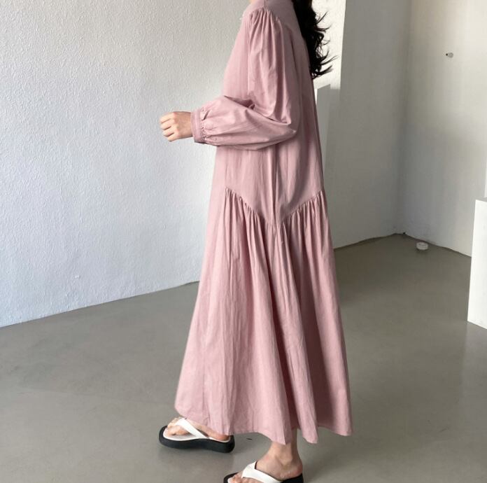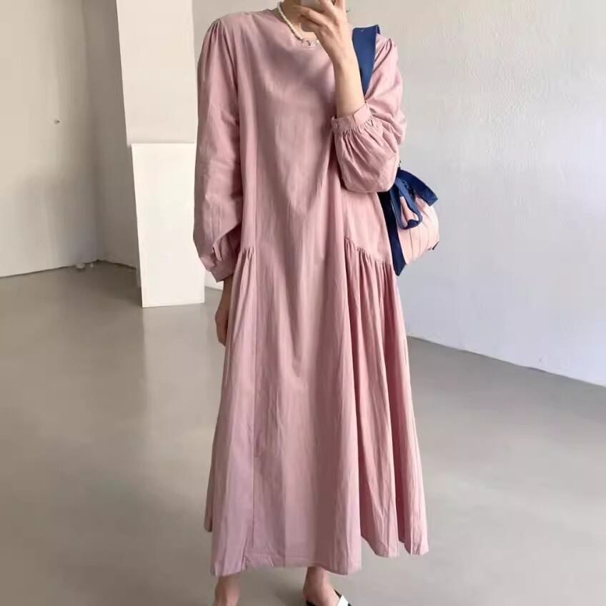 初回送料無料 秋冬レディースファッション カジュアル ゆったり プリーツ 長袖ワンピース