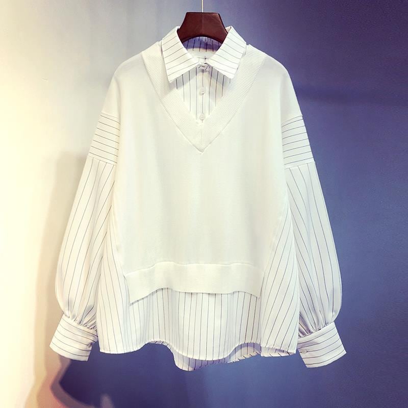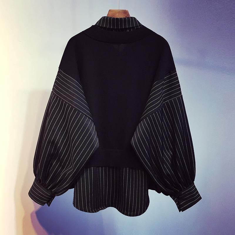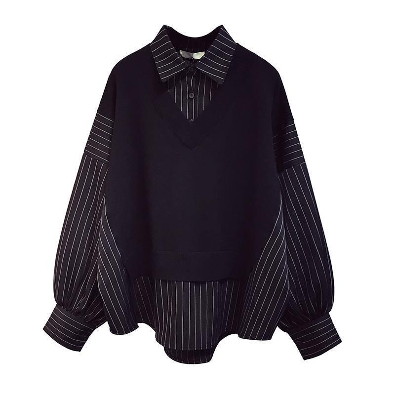 初回送料無料 秋冬レディースファッション フェイク2枚 スウェット パッチワーク 長袖トップス