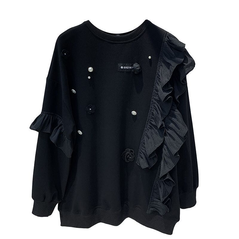 初回送料無料 秋冬レディースファッション カジュアル スウェット パッチワーク 長袖トップス