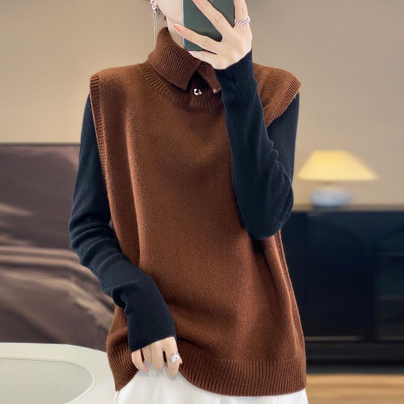 初回送料無料 秋冬レディースファッションニットセーターノースリーブ タートルネック トップス