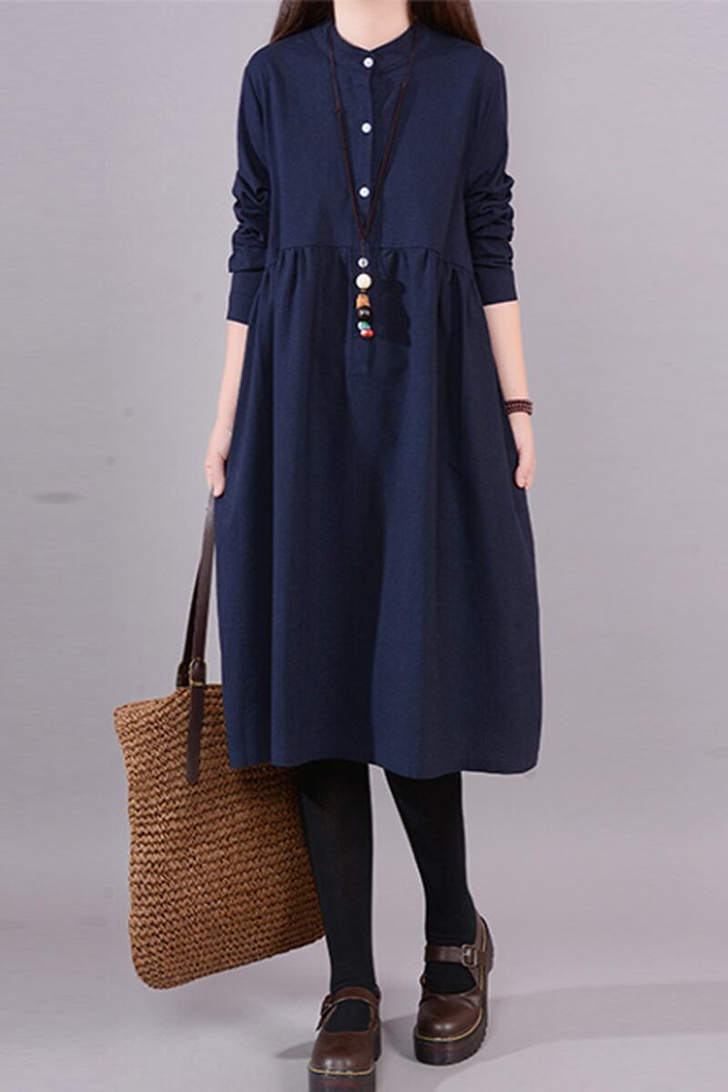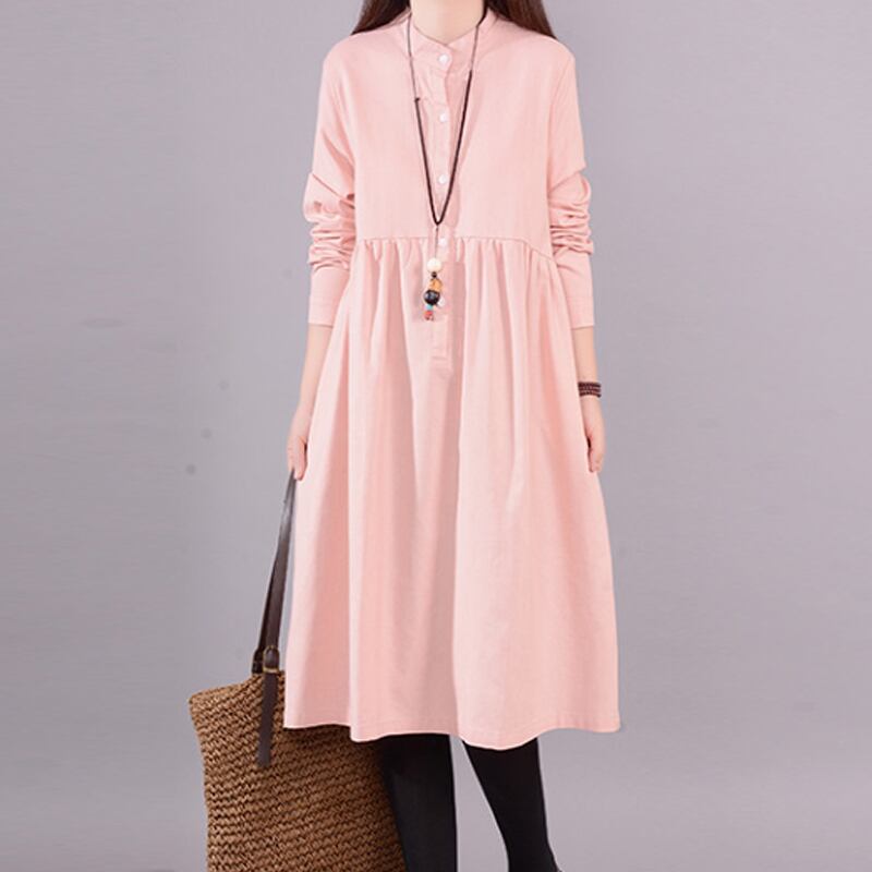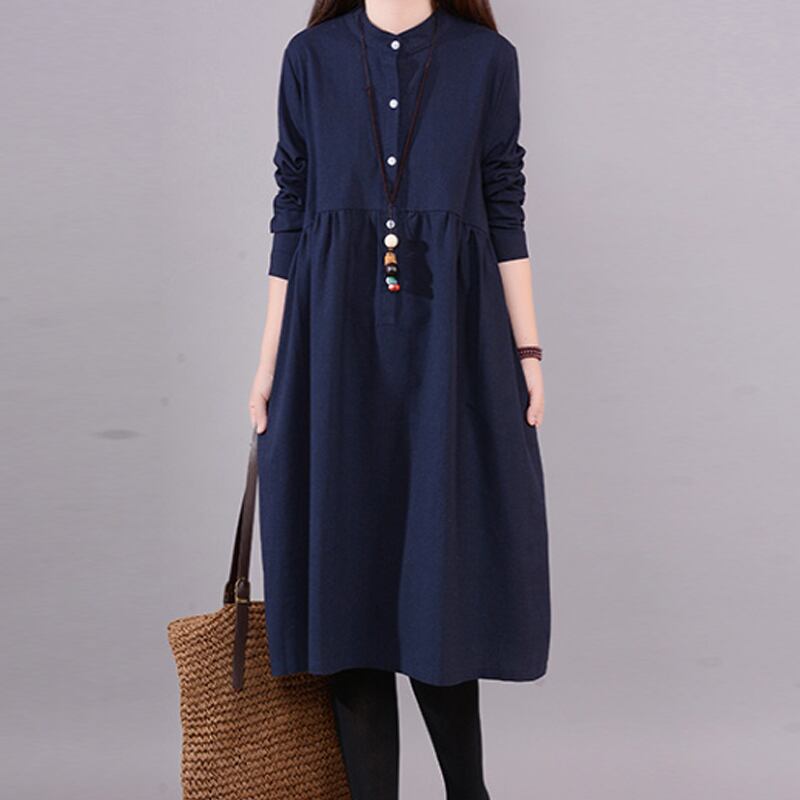初回送料無料ラージサイズルースコットンリネンドレスカジュアル長袖ワンピース