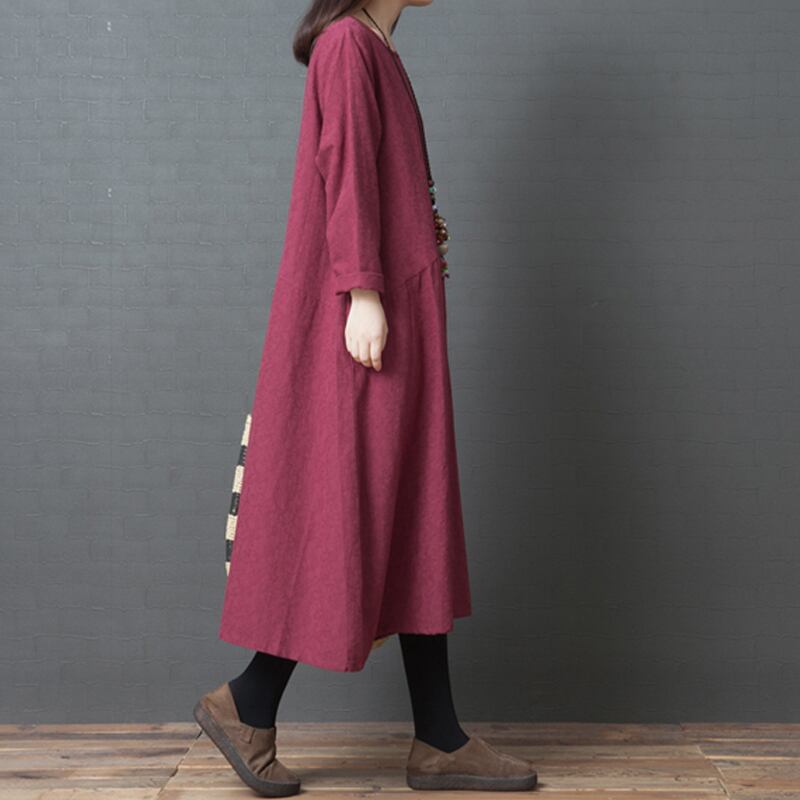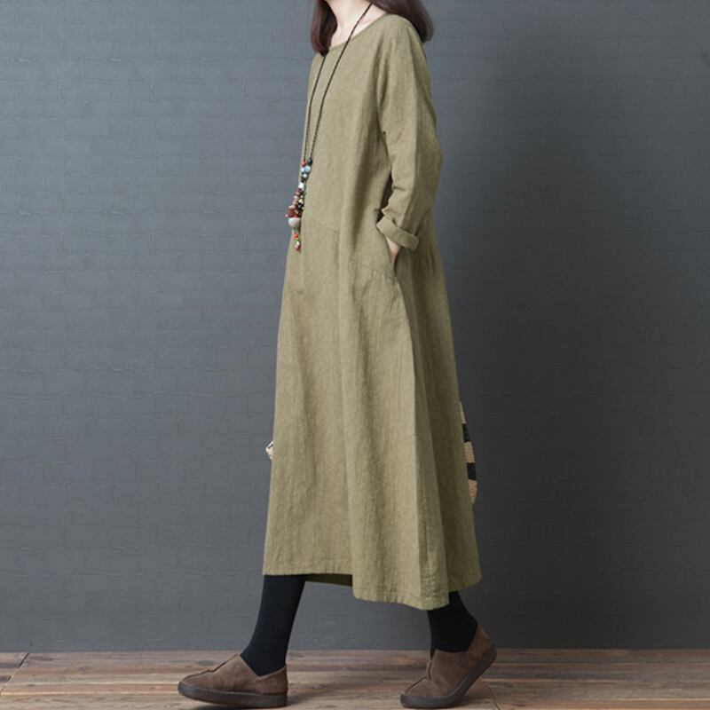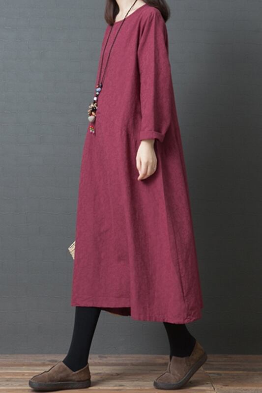 初回送料無料プラスサイズロングドレスラウンドネックミドル丈ワンピース