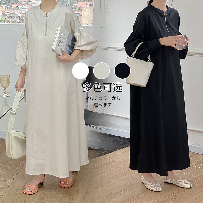 初回送料無料 日系ゆったりパフスリーブワンピース レーディスファションワンピース 人気商品