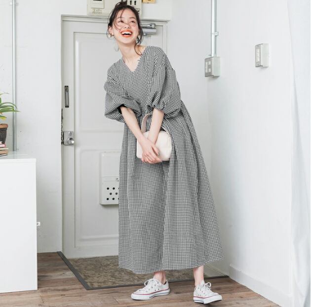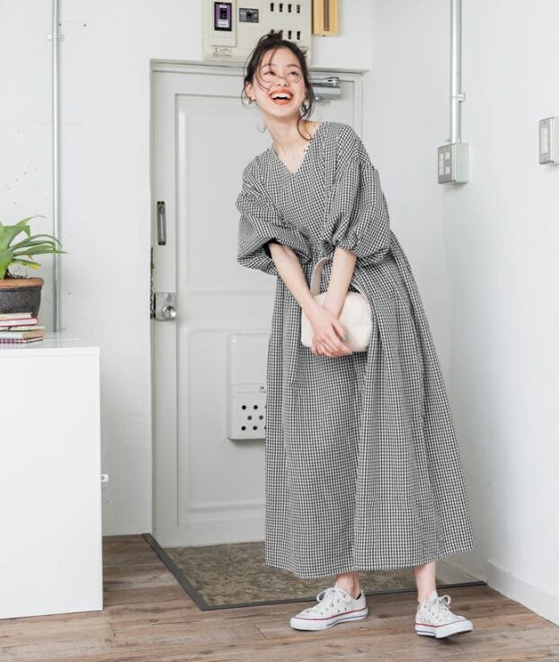 初回送料無料 パフスリーブ長袖ワンピース レーディスファションワンピース カジュアルワンピース
