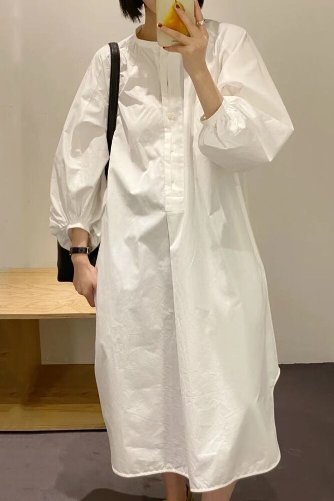 初回送料無料 カジュアルスタンドカラーフレンチパフスリーブワンピース 人気ワンピース