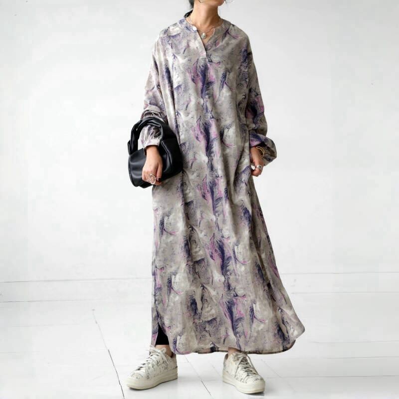 初回送料無料 秋冬レディースファッション ゆったり 花柄プリント カジュアル ロングワンピース