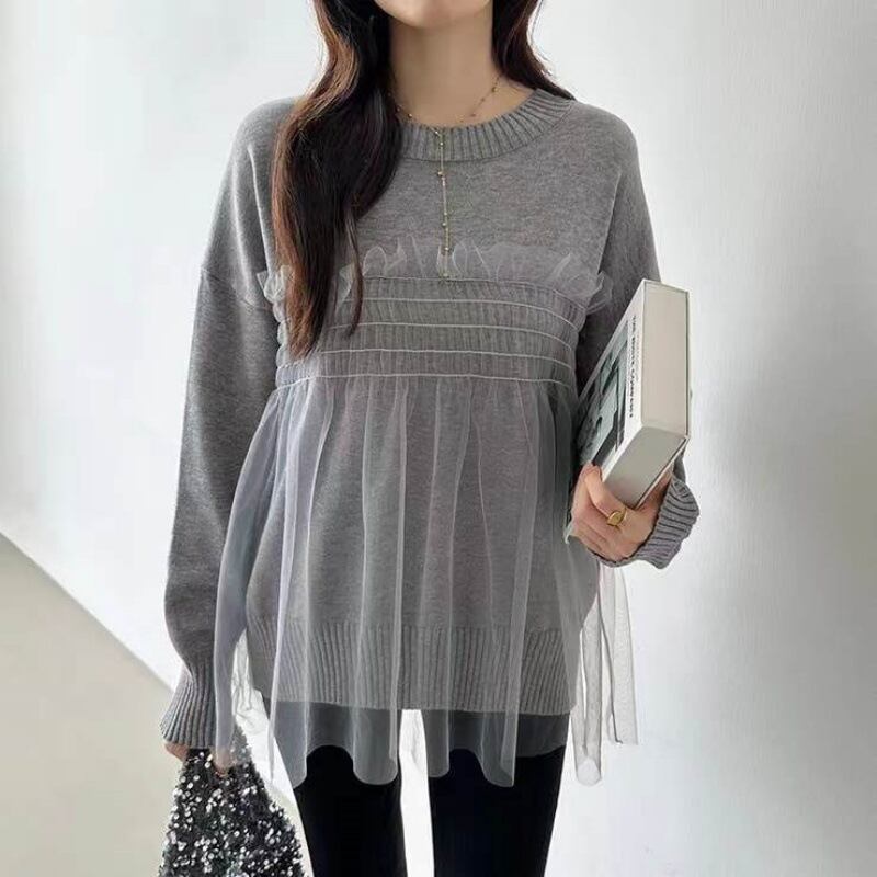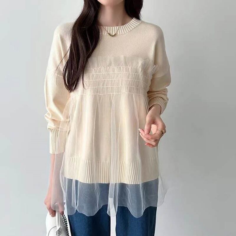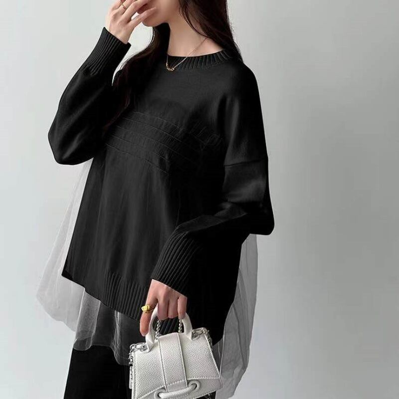 初回送料無料 秋冬レディースファッション ニットセーター メッシュレースパッチワーク トップス