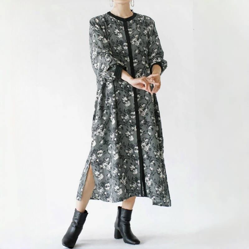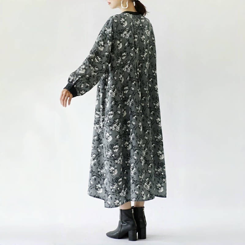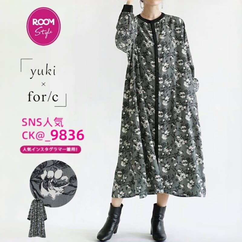 初回送料無料 秋冬レディースファッション ゆったり 花柄プリント カジュアル ロングワンピース