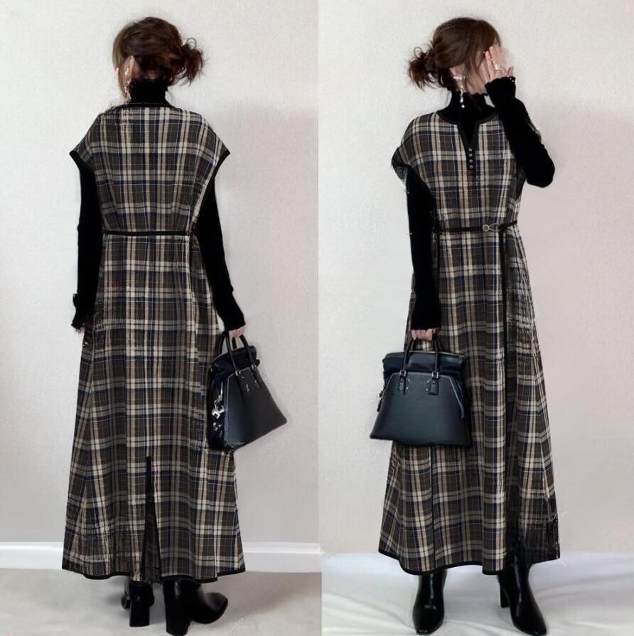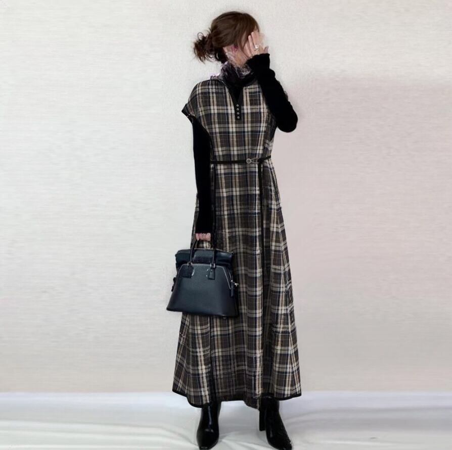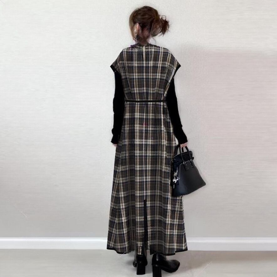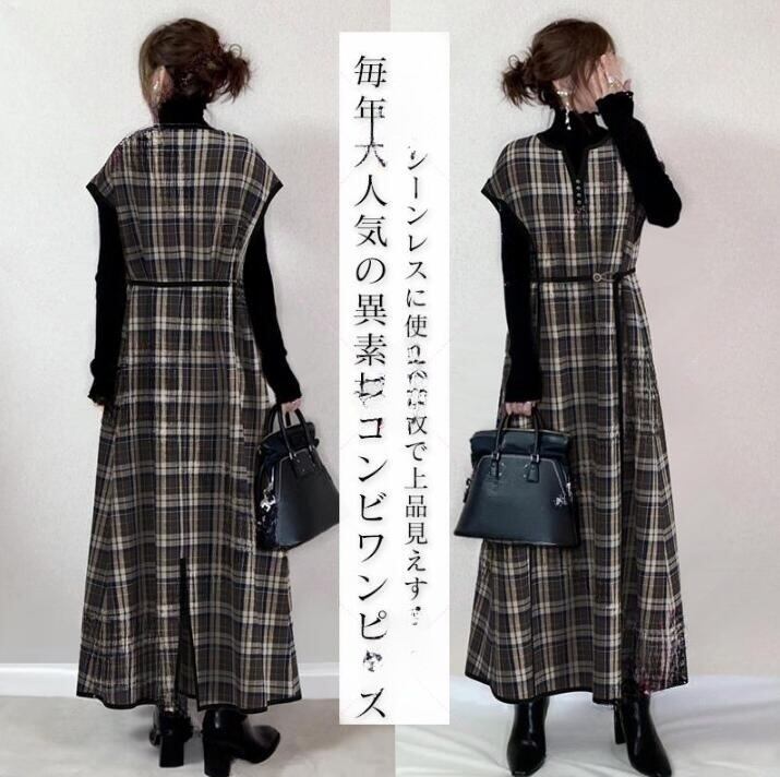 初回送料無料 新作レディースファッション カジュアル 人気 ノースリーブチェック柄ワンピース