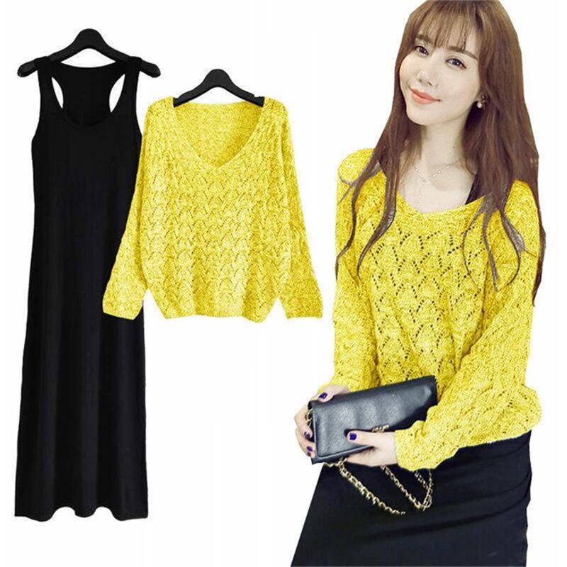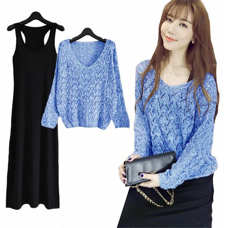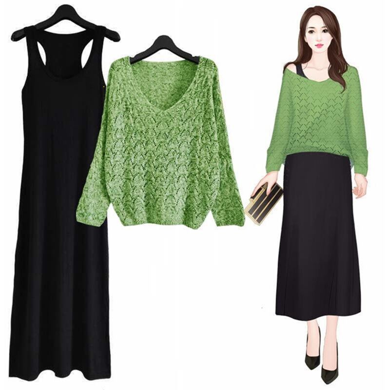 初回送料無料 ゆったりVネックニットトップスとワンピース2点セット レーディスファション商品