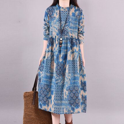 初回送料無料 新作長袖ゆったりカジュアル綿麻ワンピース レーディスファション商品 人気商品