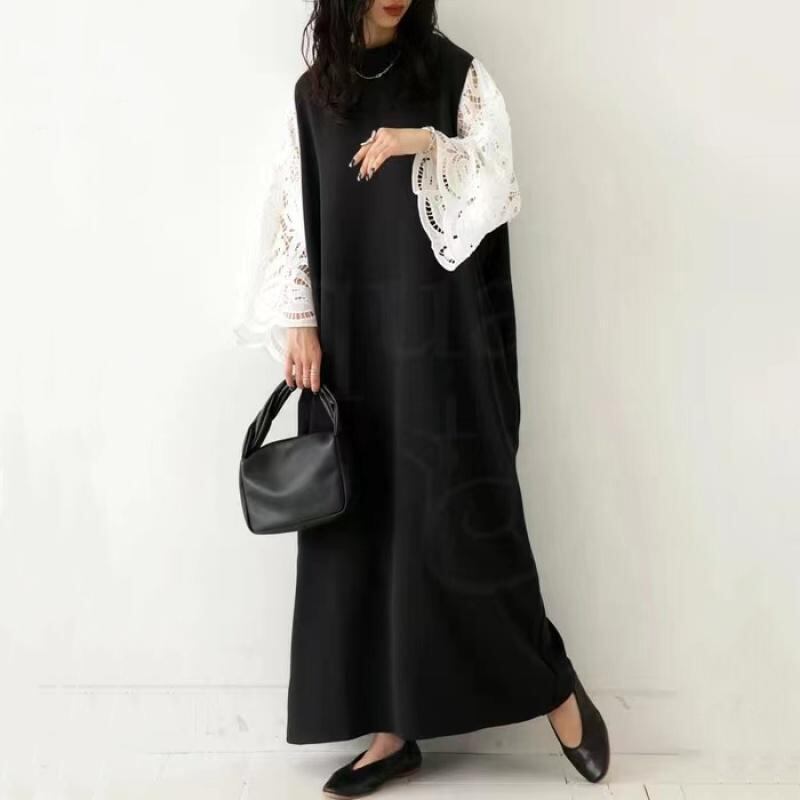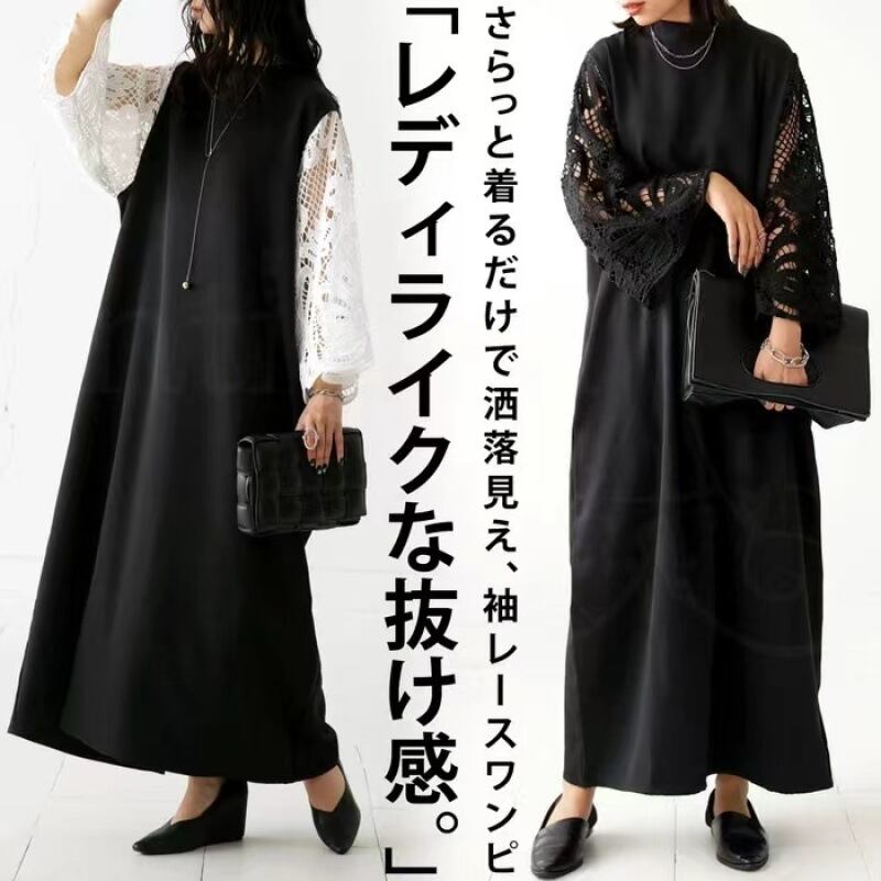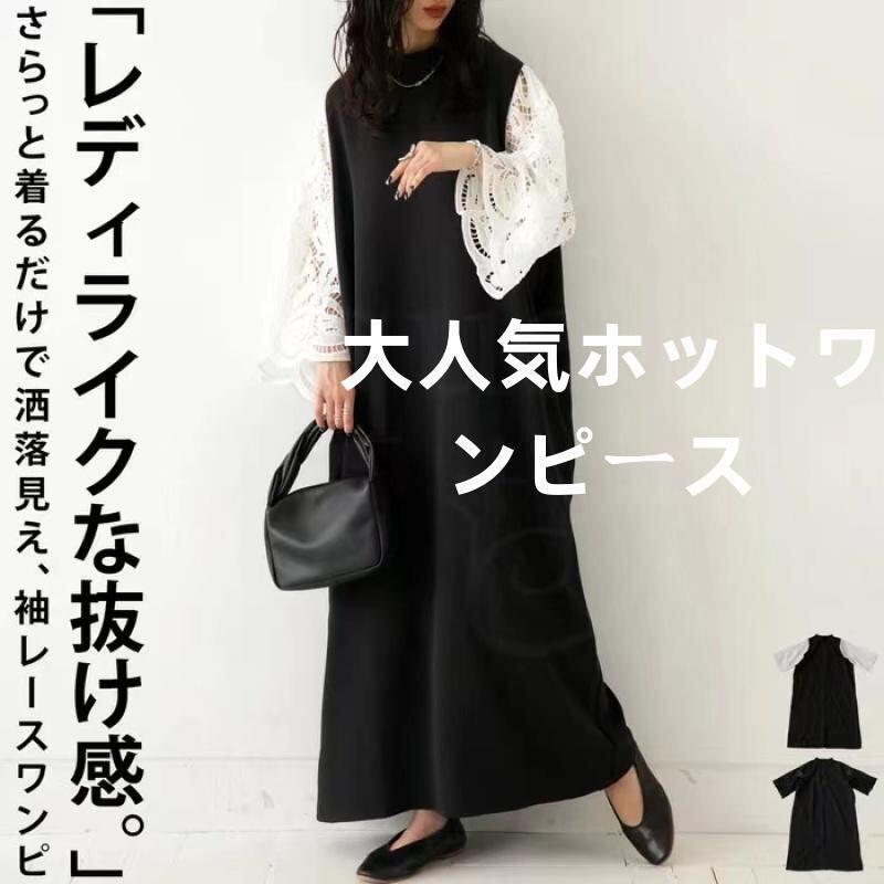 初回送料無料 新作日系ゆったりサイズワンピース レース付きワンピース おしゃれなワンピース