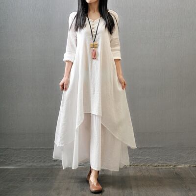 初回送料無料 春秋新長袖ゆったり 綿麻 カジュアルワンピース レーディスファション商品
