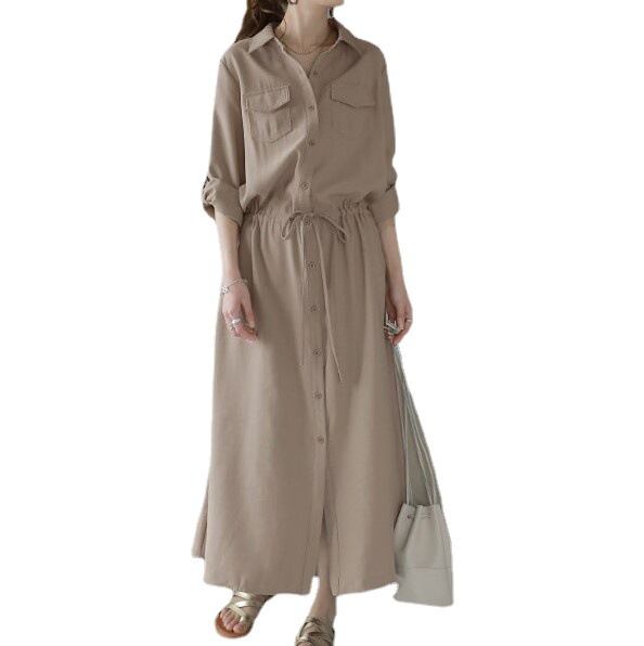 初回送料無料 秋の新作 長袖カジュアルシャツ風ワンピース おしゃれなワンピース 人気ワンピース