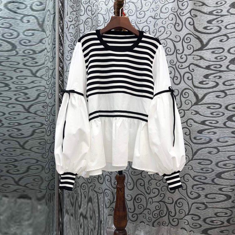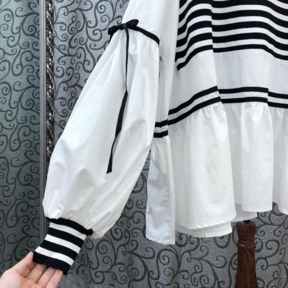 初回送料無料 春と秋の新作 長袖ゆったりトップス ストライプ レーディスファション商品 上着