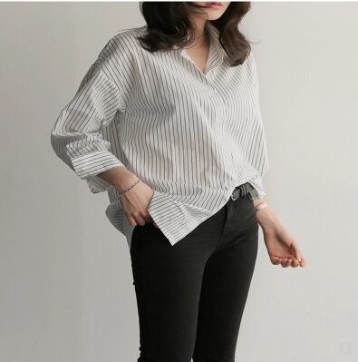 初回送料無料 新作長袖ゆったりストライプシャツ ミディアムサイズ レーディスファショントップス