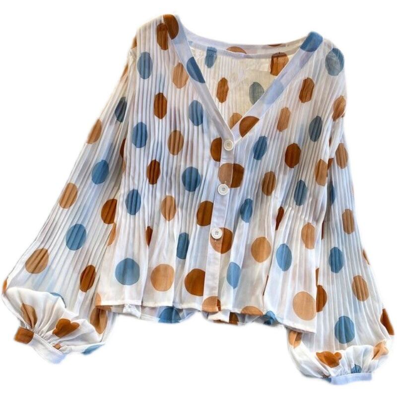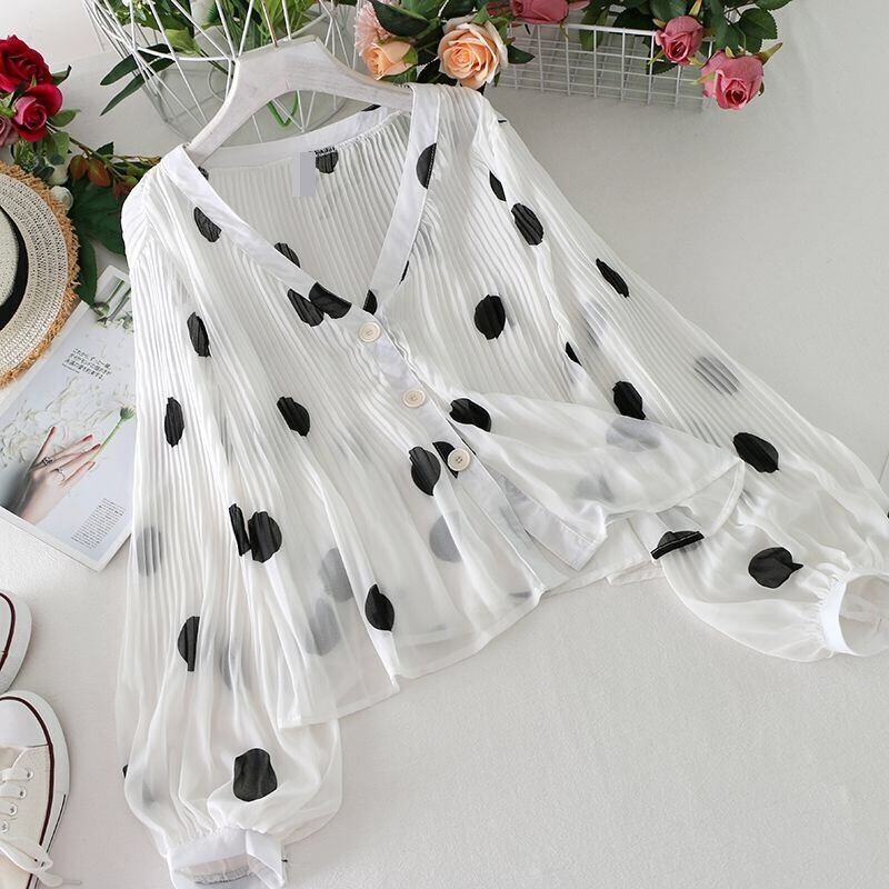 初回送料無料 ゆったりトップス Vネックパフスリーブシャツ シフォンカーディガン 人気上着