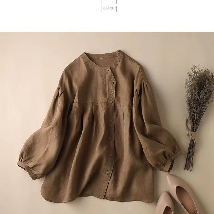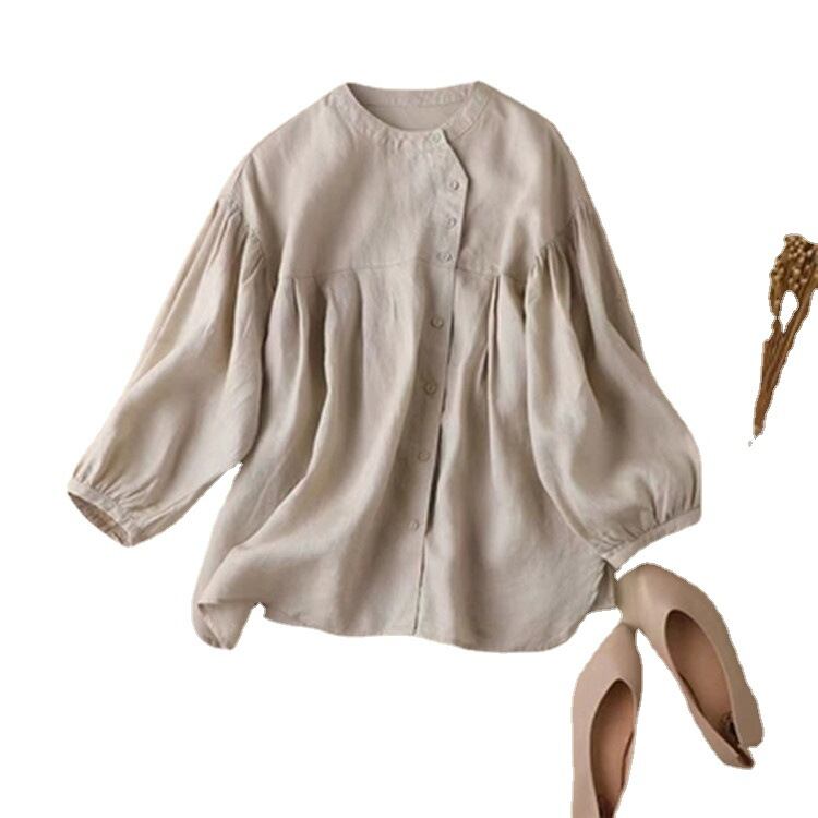 初回送料無料 新作ゆったりパフスリーブシャツ 九分袖綿麻トップス レーディスファション商品