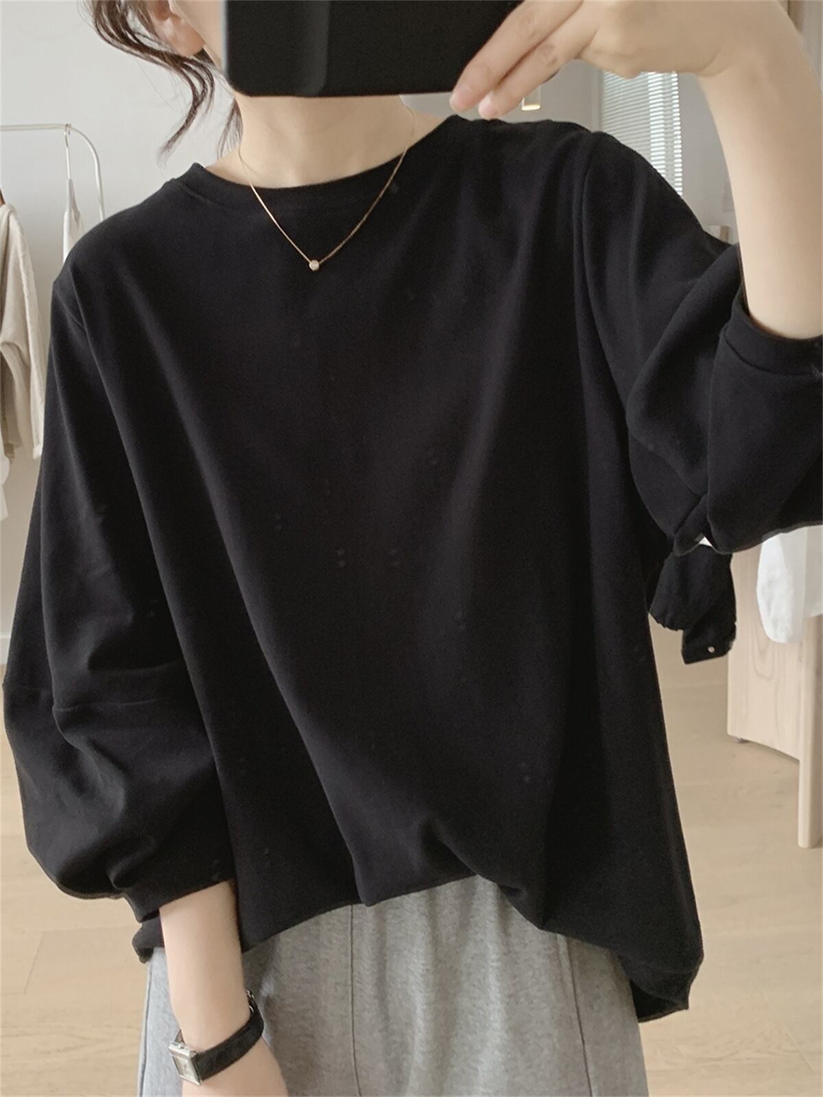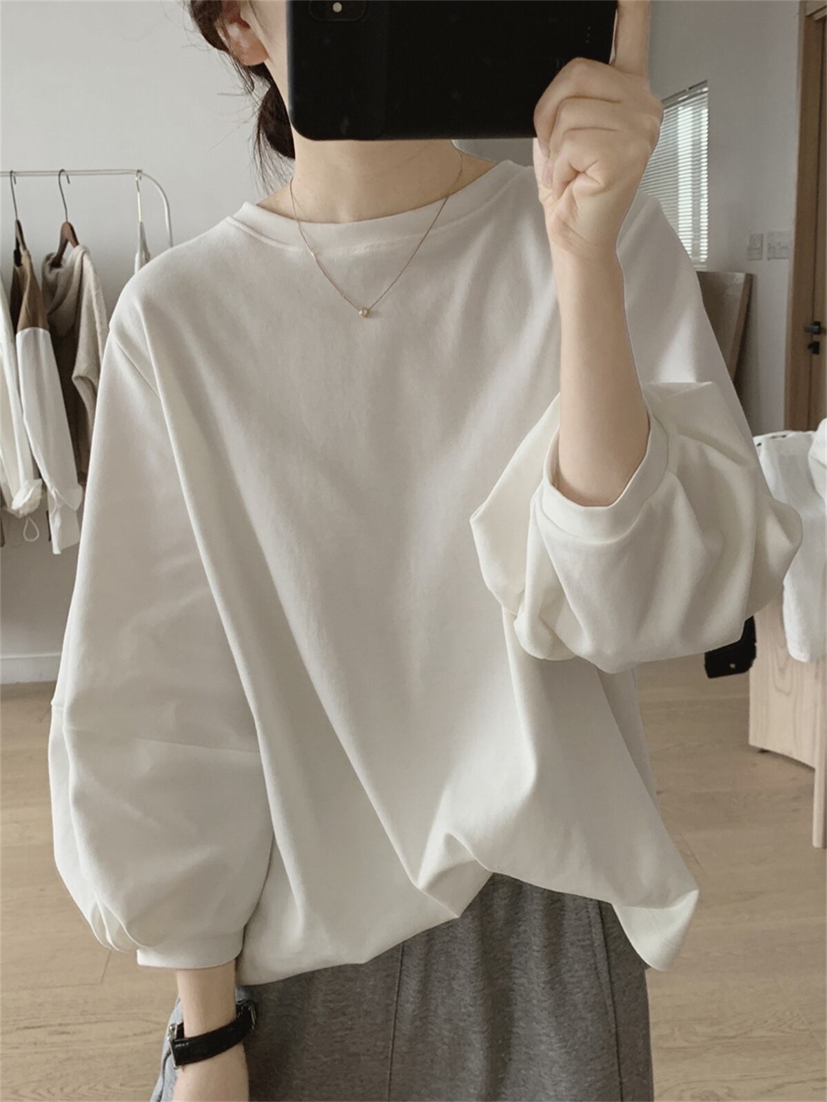 初回送料無料 日系ゆったりトップス Tシャツ 七分袖パフスリーブコットンブラウス 人気上着