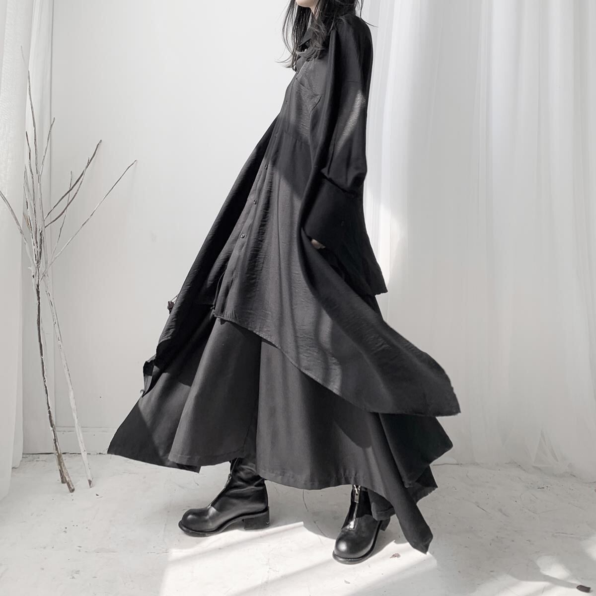 初回送料無料 春と秋のゆったりロングシャツと半身スカート2点セット レーディスファション商品