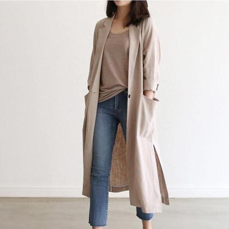 初回送料無料 新作 スーツコート 早秋綿麻 ロング丈コート レーディスファション商品