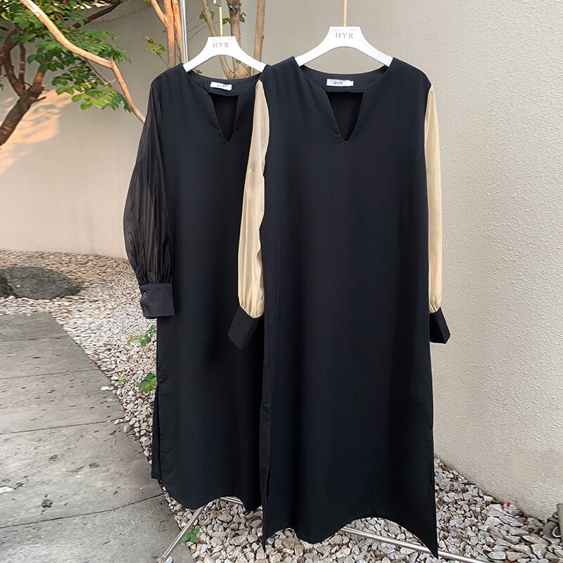 初回送料無料 新作シフォン長袖ゆったりサイズワンピース カジュアルワンピース 人気商品