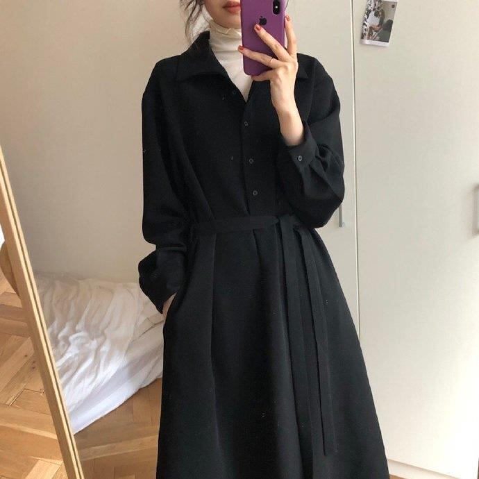初回送料無料春と秋の新作ウエストミディアム丈シャツスカートワンピー?