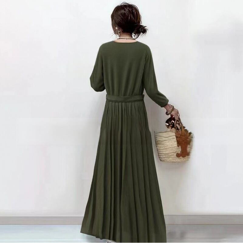 初回送料無料 秋冬の新作 日系長袖Vネックネックワンピース レーディスファションワンピース