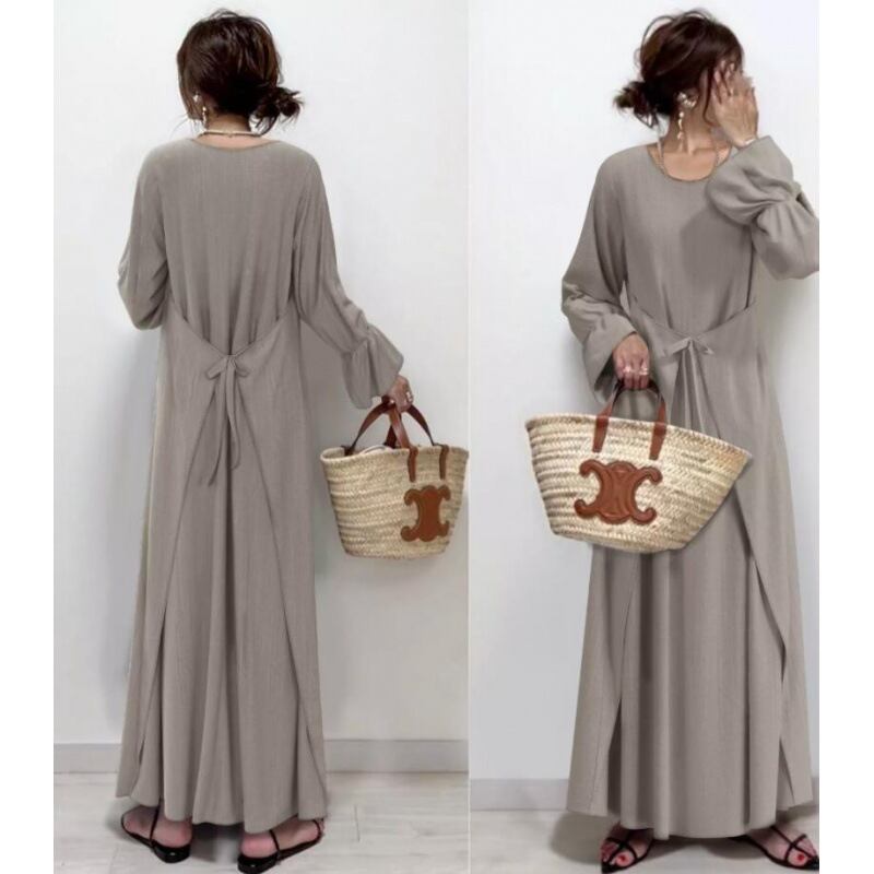 初回送料無料 秋冬の新作日系ゆったりパッチワークフレアスリーブワンピース カジュアルワンピース