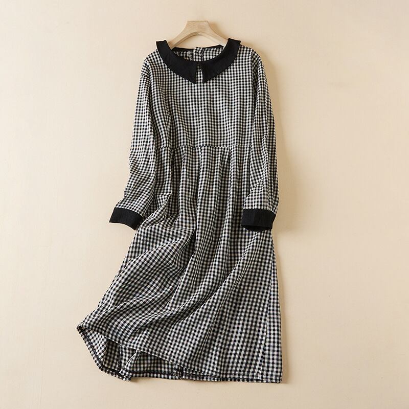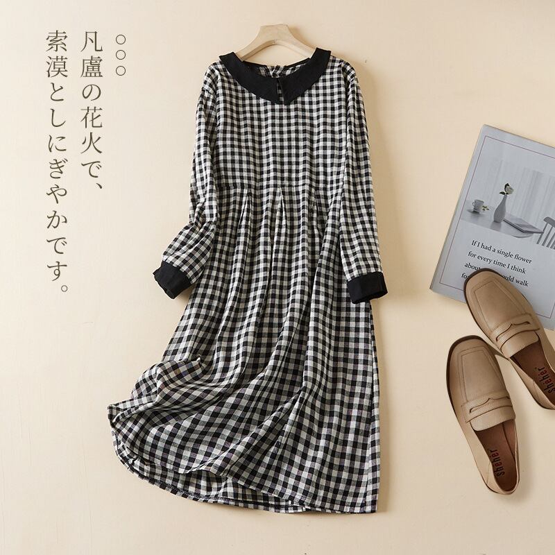 初回送料無料 新作長袖カジュアルオーバーサイズチェックワンピース カジュアルワンピース