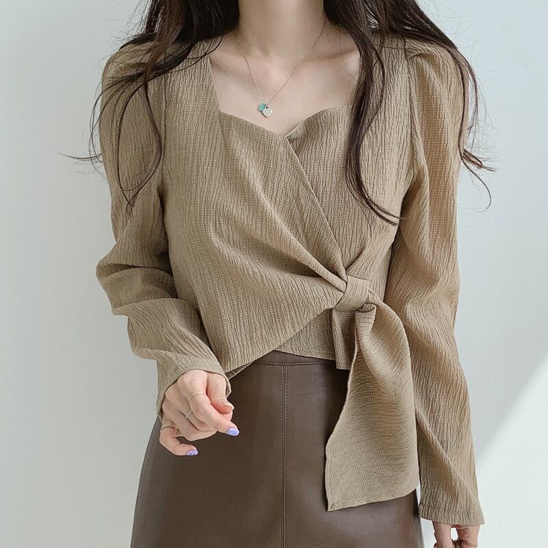 初回送料無料 春と秋の長袖上着 シャツ風ブラウス 着痩せ見えトップス 人気上着