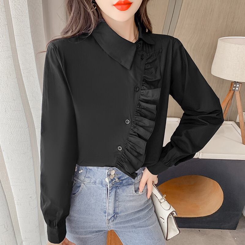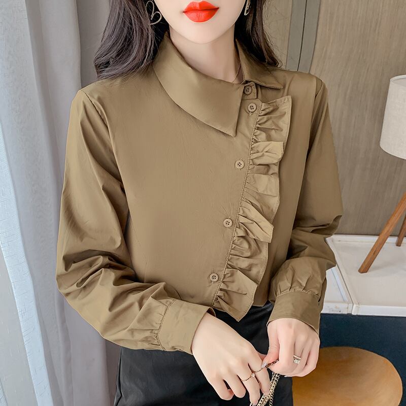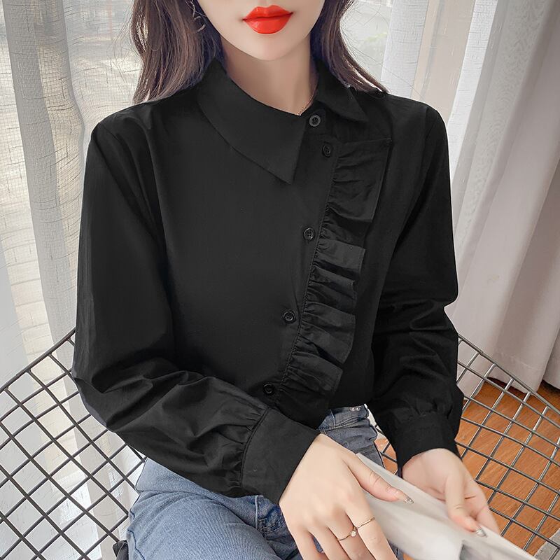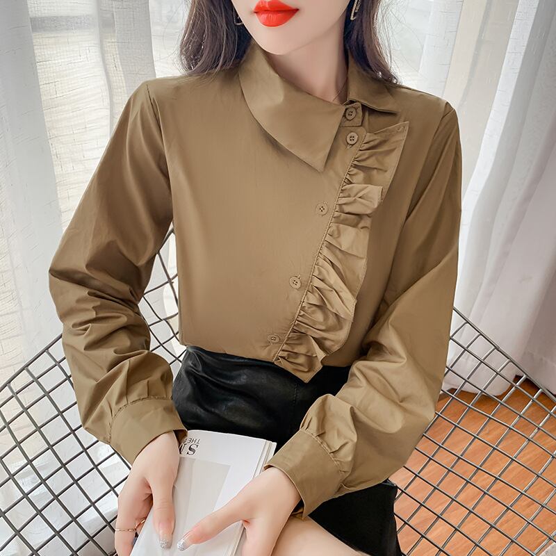 初回送料無料 春と秋新作 長袖ゆったり上着 アンバランスシャツ レーディスファション商品
