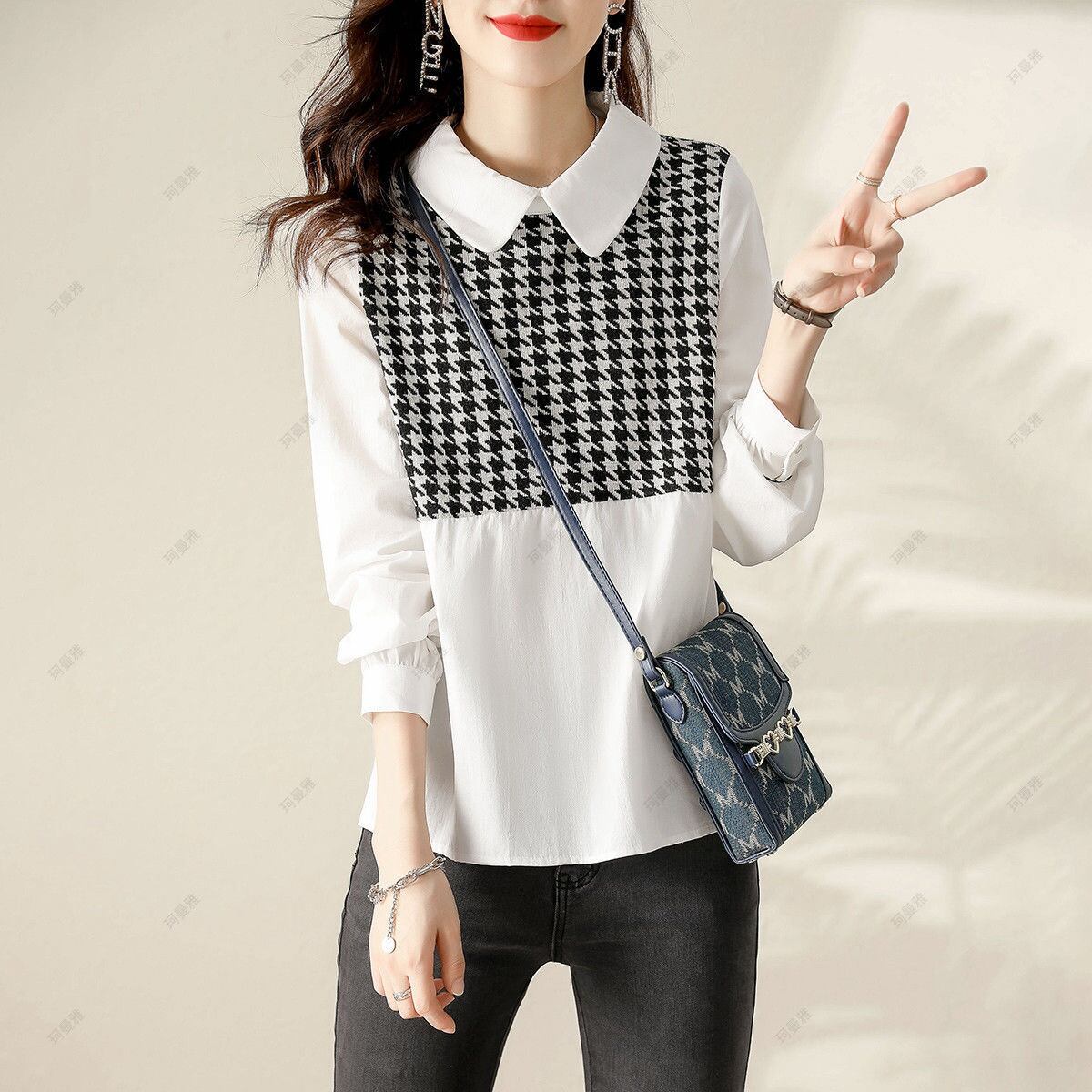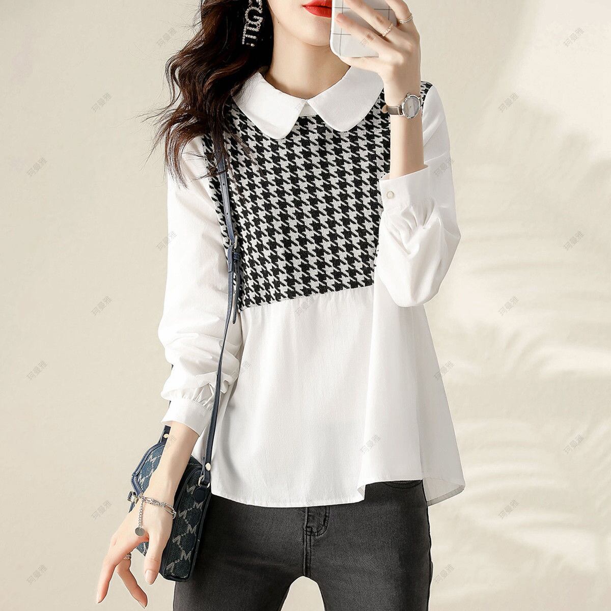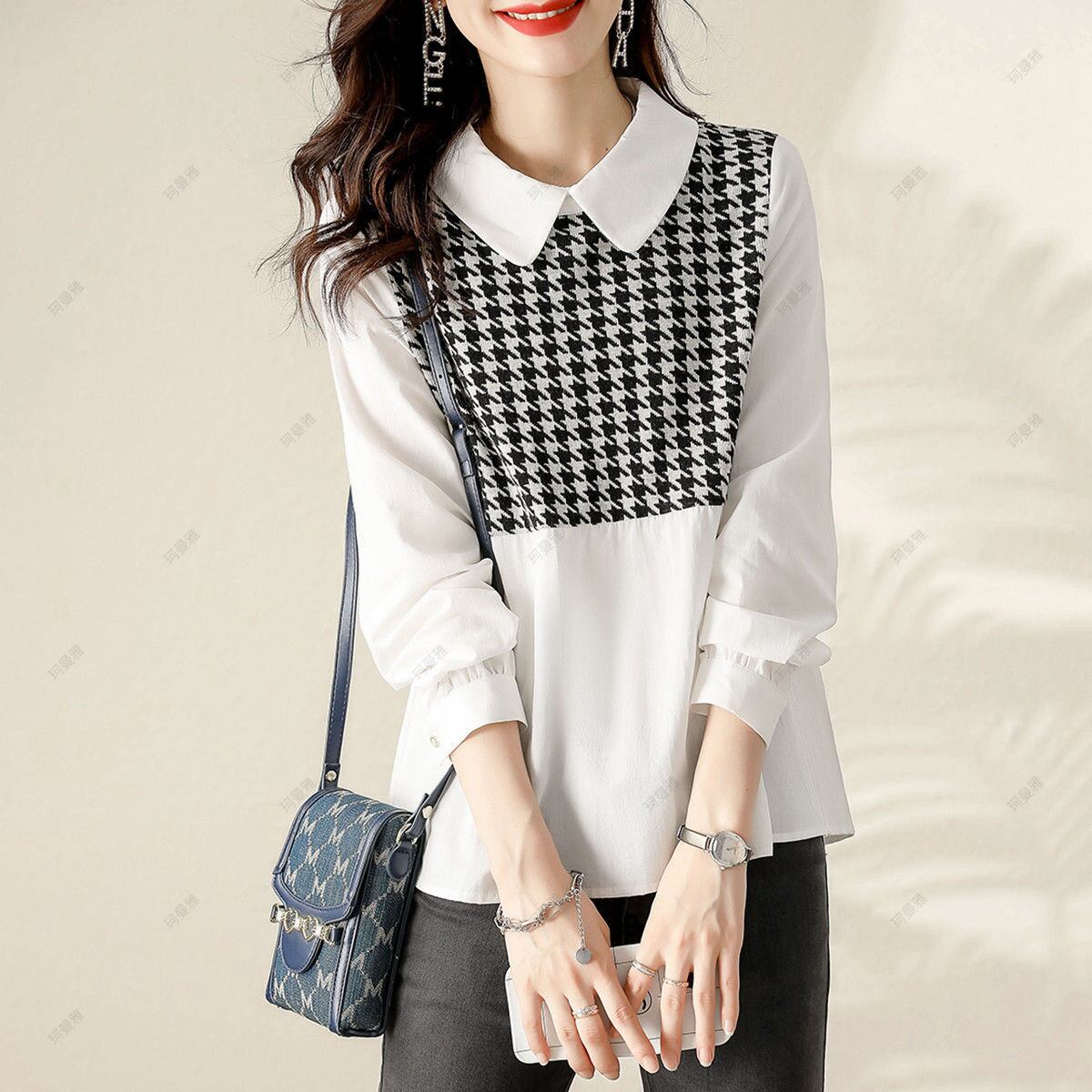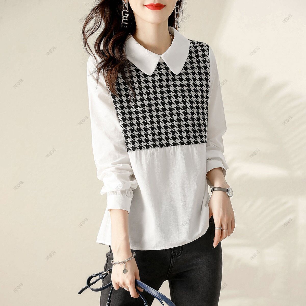 初回送料無料 春と秋新作 ゆったりしたシャツ風ブラウス 着やせ見トップス カジュアルブラウス