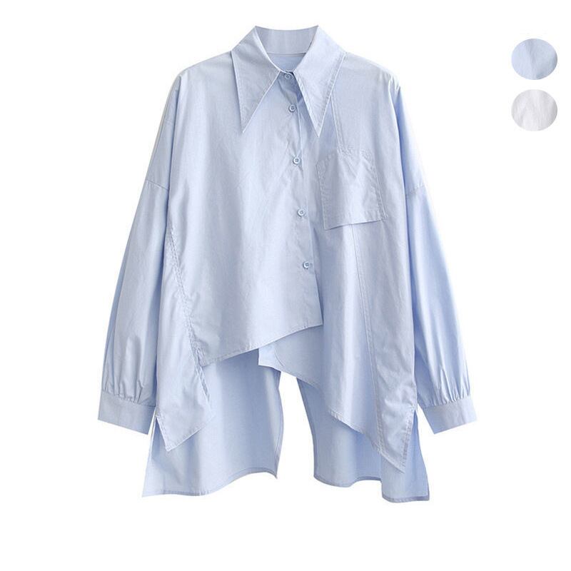 初回送料無料 春秋 新作長袖ゆったりアンバランスシャツ レーディスファション商品 上着