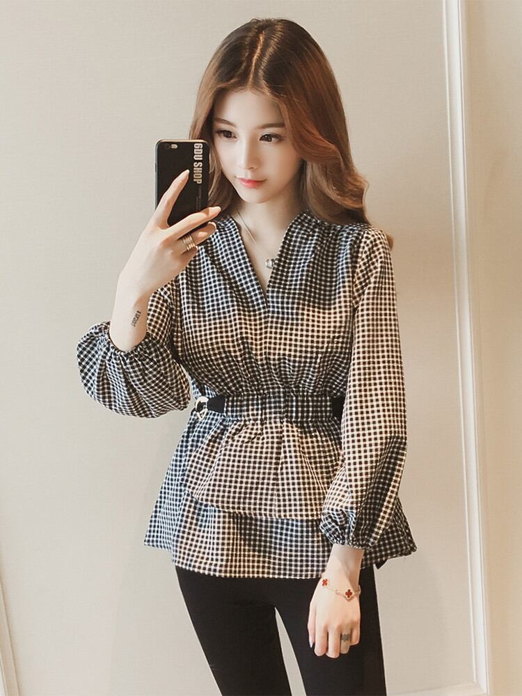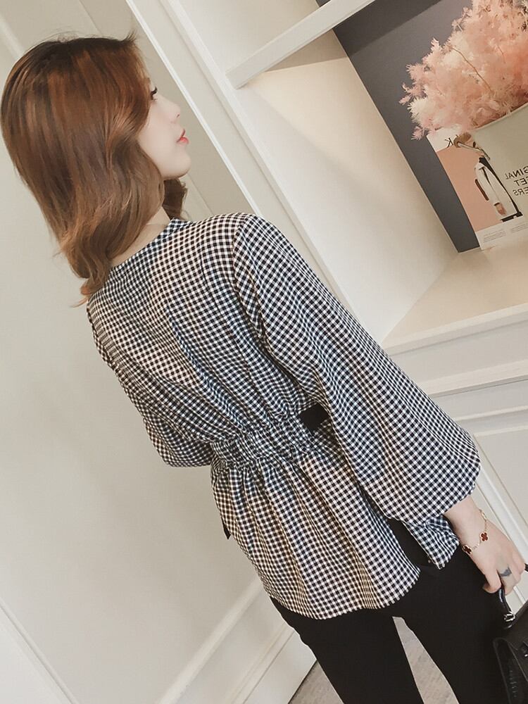 初回送料無料 新作長袖トップス Vネックシャツ オーバーサイズチェックトップス 人気商品