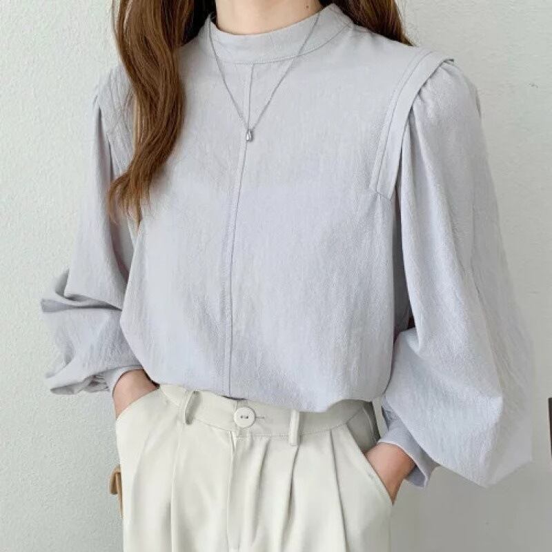 初回送料無料 春秋新作 日系長袖ゆったりパフスリーブシャツ風ブラウス おしゃれなトップス