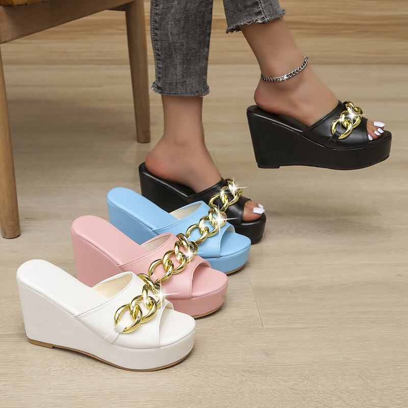 初回送料無料ビーチサンダルチェーンマフィンプラスサイズプラットフォームスリッパ