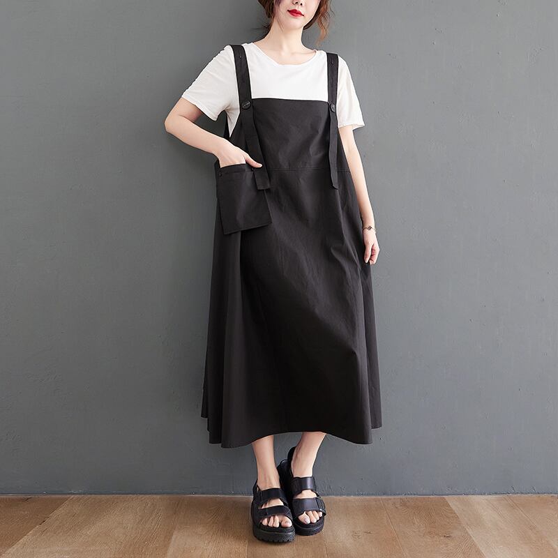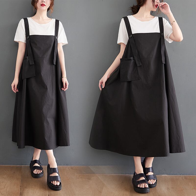 初回送料無料プラスサイズのルーズドレスサスペンダーワンピース
