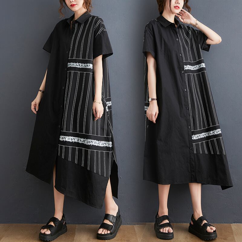 初回送料無料ストライプのドレスシャツスリットレディースファションワンピース