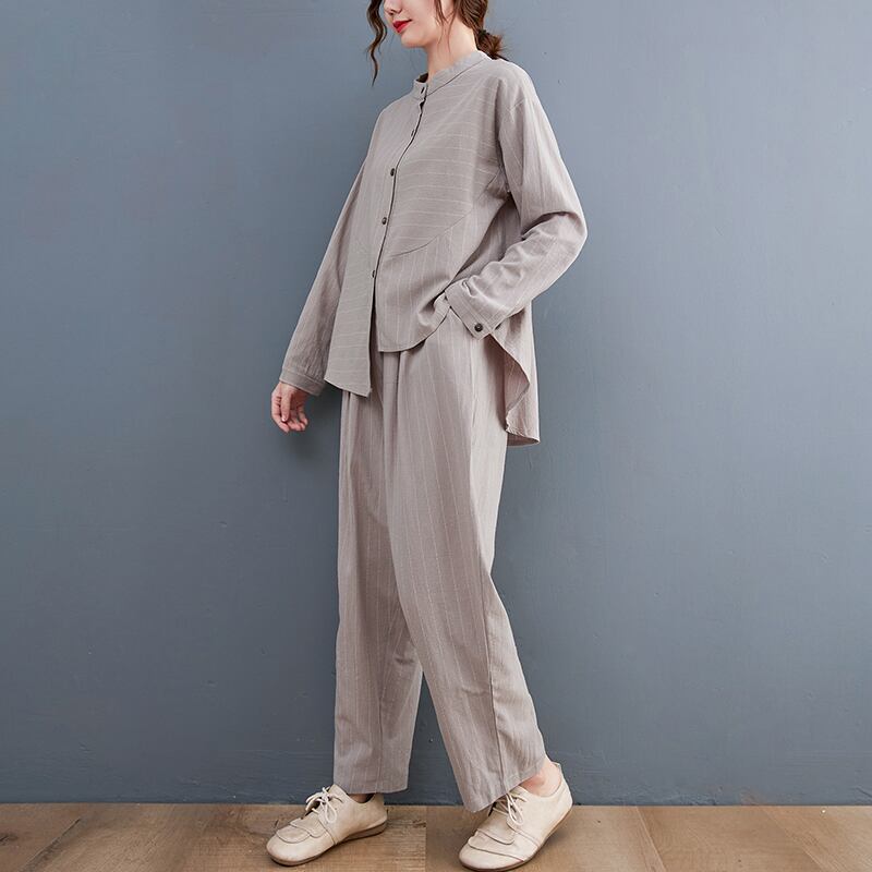 初回送料無料ゆったりとしたストライプのコットンとリネンのスリミング上下セット