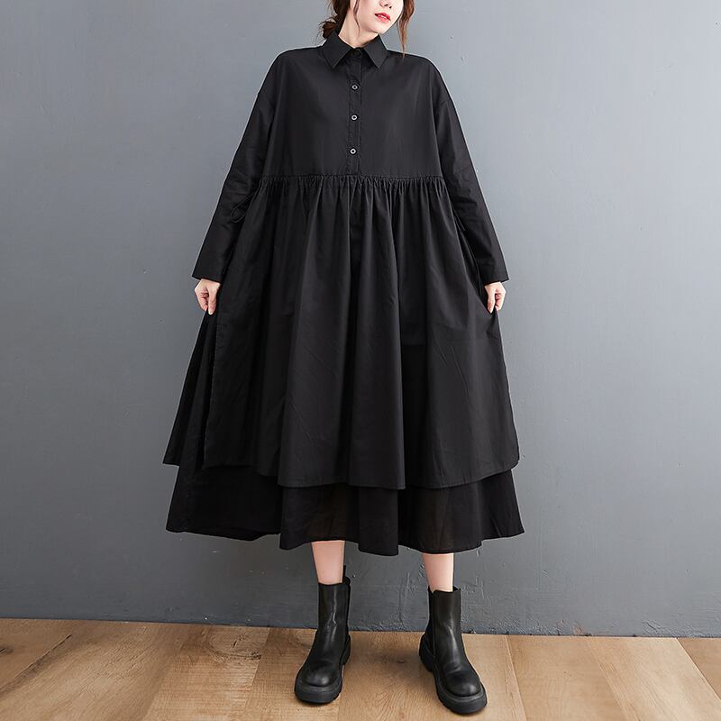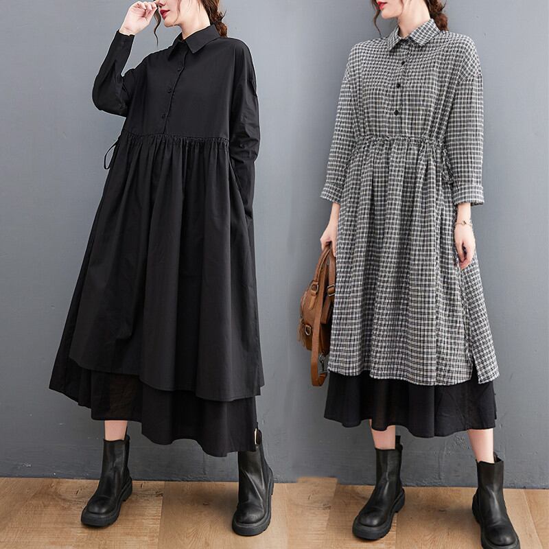 初回送料無料ロングドレスミドル丈シャツフェイクツーピースワンピース