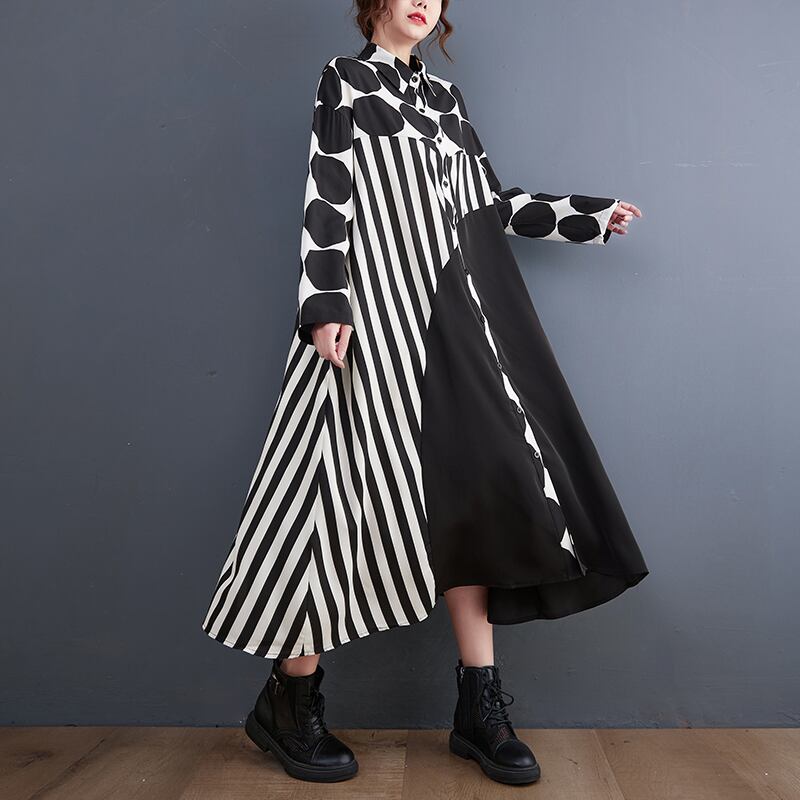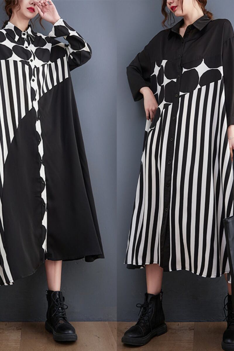 初回送料無料 シャツワンピース 大判ゆったりドットファッションワンピース 人気商品
