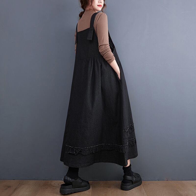 初回送料無料ルーズドレスデニムサスペンダーフリルレディースファション服